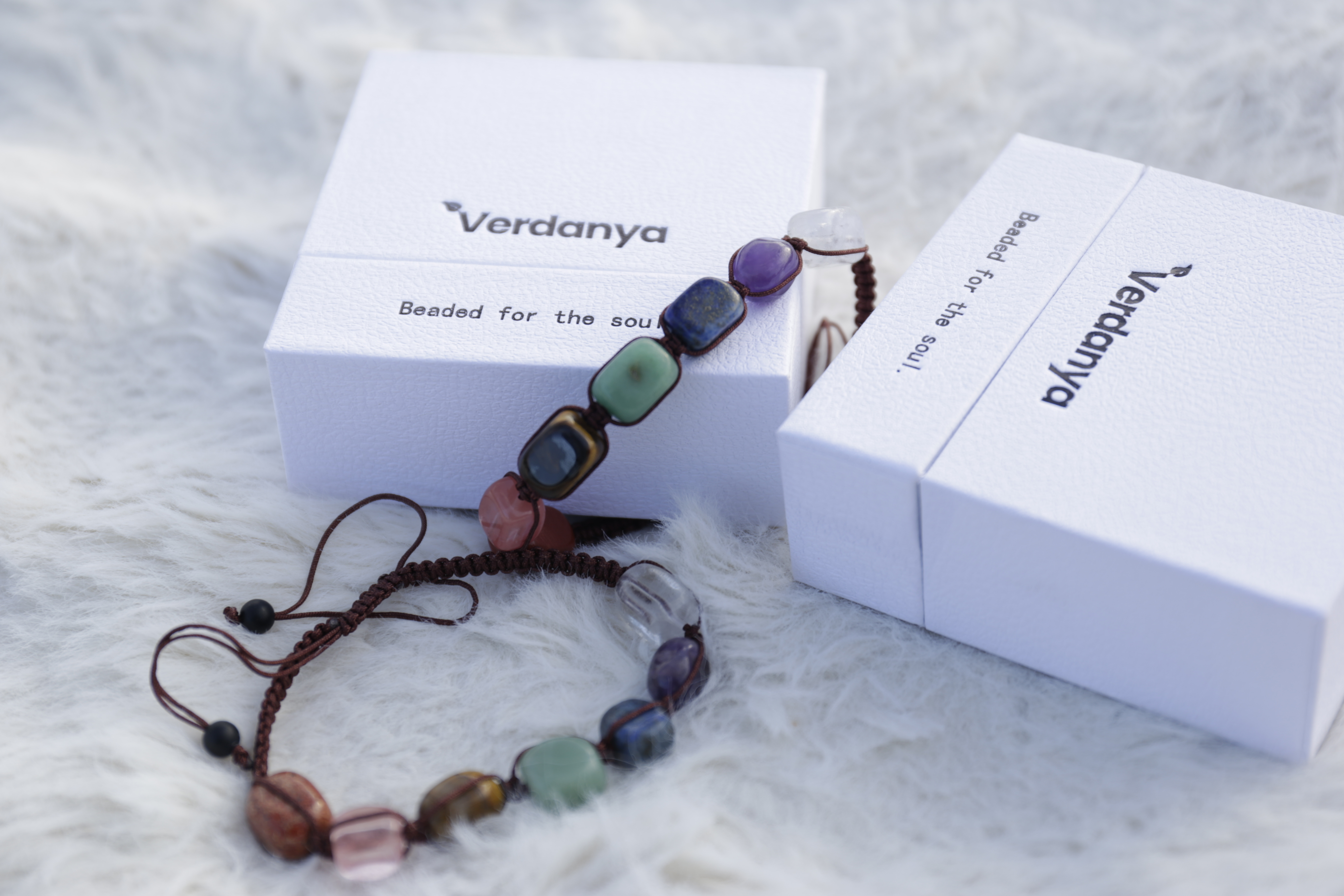 Made of clear quartz, amethyst, red jasper, red aventurine, sodalite and tiger's eye, this bracelet symbolizes the flow and balance of natural energy. Clear quartz brings purification and clarity, amethyst inspires inner peace, red jasper and red aventurine add vitality and courage, sodalite helps rational thinking, and tiger's eye symbolizes bravery and determination. Wearing this bracelet, you feel as if you are in the energy veins of nature and feel the seamless flow of energy.