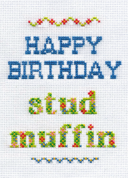 Not your average cross-stitch sampler! This is what happens when stitchers go over to the dark side. 133mm x 184mm, each card comes cello-wrapped with a coloured envelope.