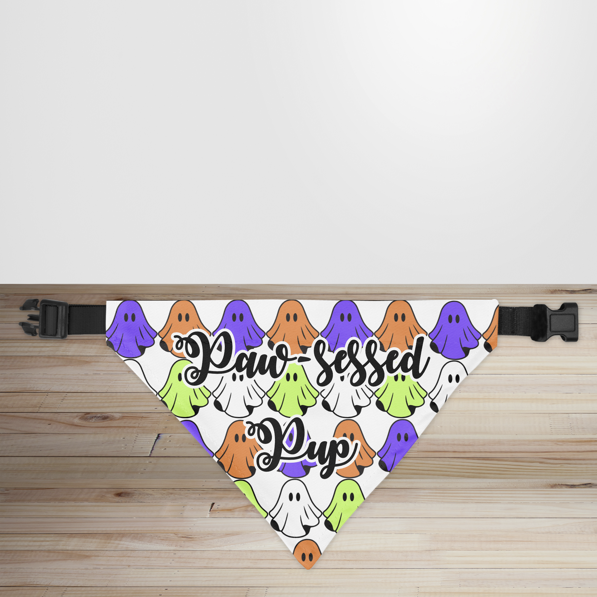 Spook-tacular Design: Features the phrase "Paw-sessed Pup" with eerie Halloween graphics — think ghosts, moons, and a hint of haunting mischief.