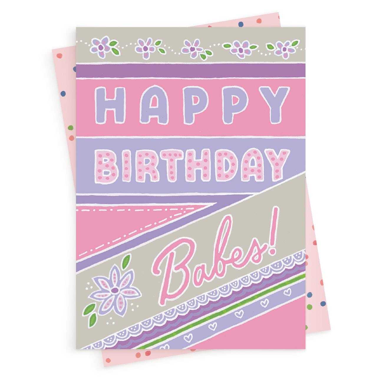 Happy birthday Babes, a fun and feminine birthday card with a gorgeous printed envelope - 12 x 17cm and blank inside - made in the UK