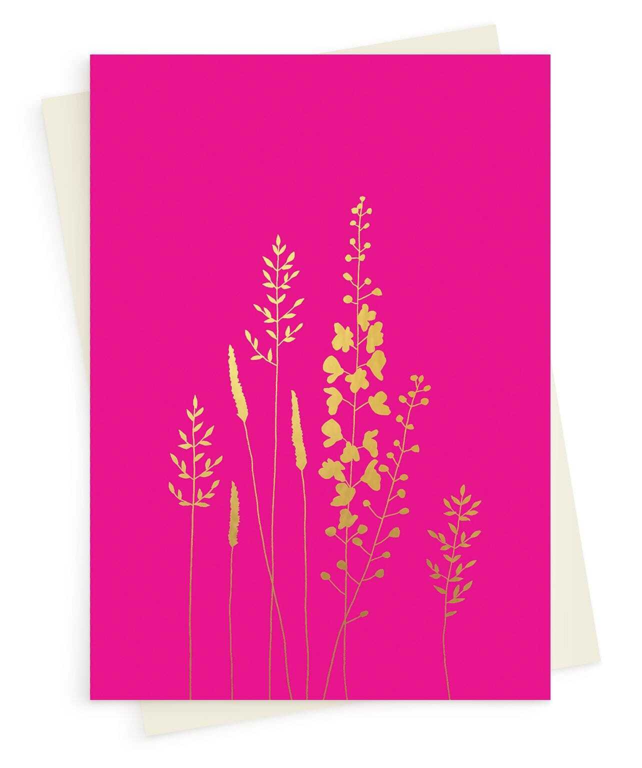In the meadow floral greeting card embellished with golden foil - designed by artist Eloise Hall - 15.7 x 11cm and blank inside