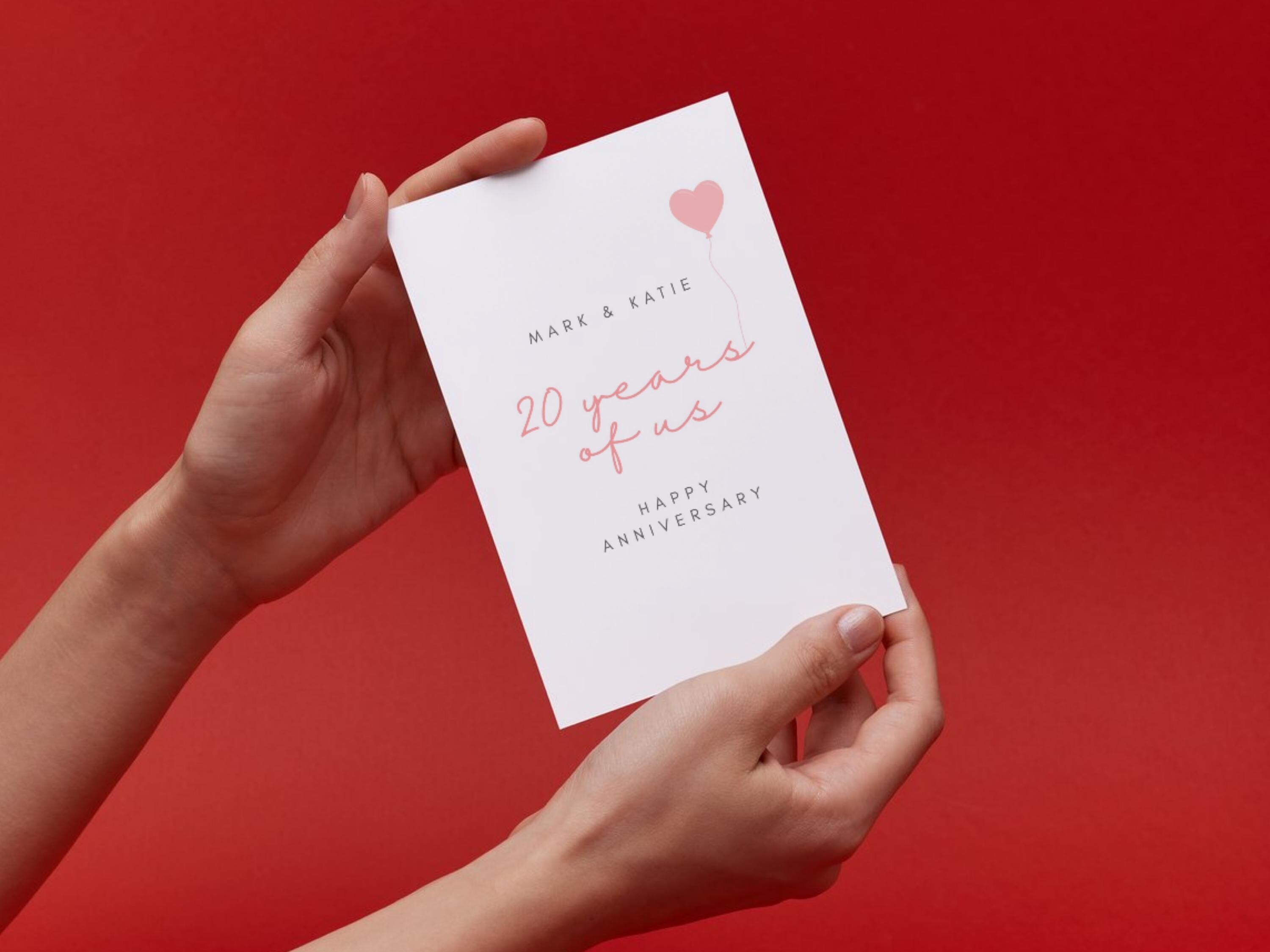 💡 Ideal for: 20 year anniversary gifts, romantic cards, 20th anniversary cards, personalised anniversary ideas.