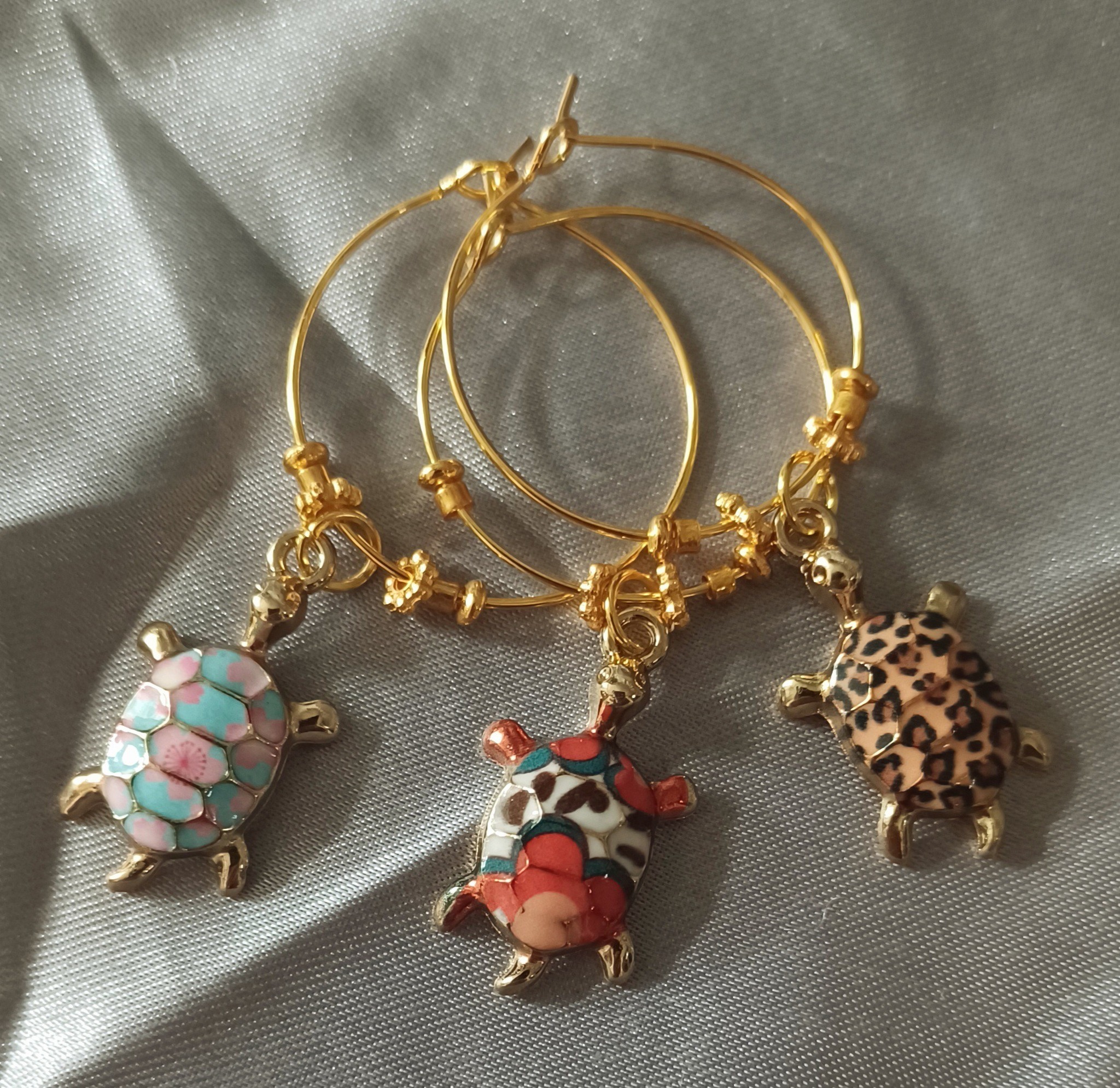Set of 6 colourful and decorative enamel turtle wine glass charms (gold tone). A perfect addition to any dinner party and they make a great gift for family, friends or Secret Santa.