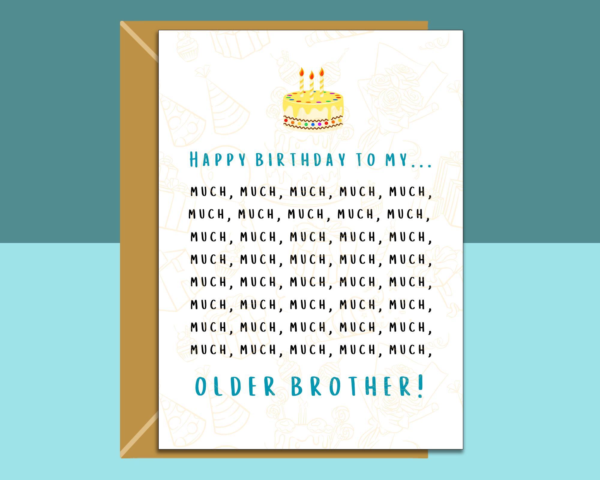 Brother Birthday Card - Funny Personalised Birthday Card for your Brother - 18th, 19th, 20th, 22nd, 23rd, 24th, 25th, 30th, 31st, 32nd, 35th, 40th, 50th or any other age. To customise the inside of the card with a printed message, please see the instructions below: