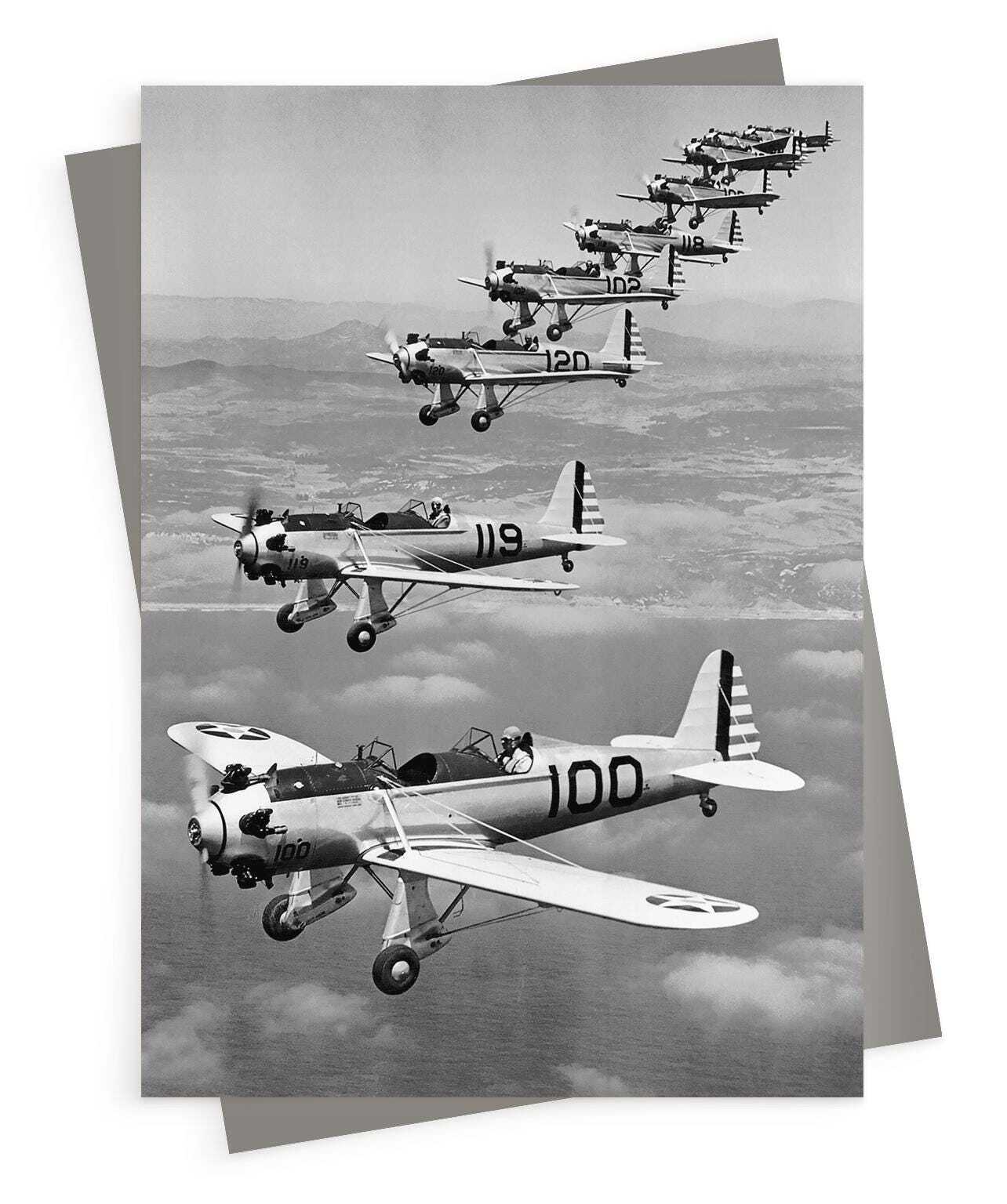 Planes in formation, photographic black and white aeroplane themed card - 12.6 x 17.7cm and blank inside - made in the UK