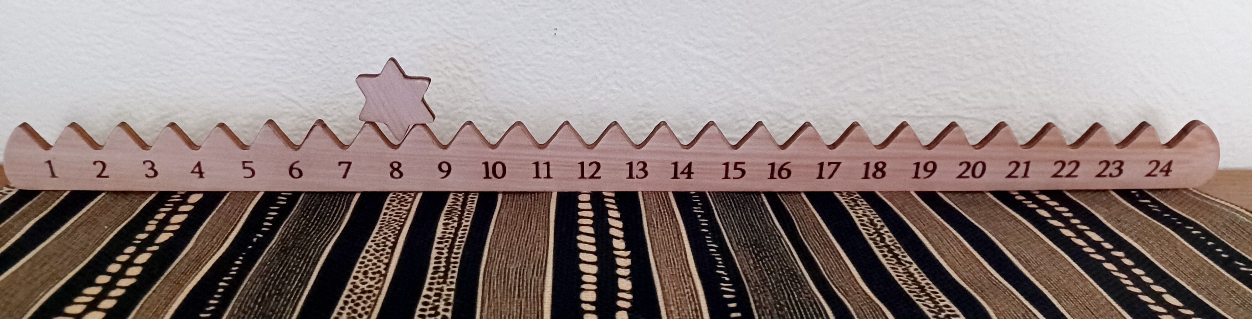 Fun and decorative wooden Christmas countdown calendar with a star. Just move along each day in the lead up to Christmas (you could paint the star in the same colour as your Christmas decor).