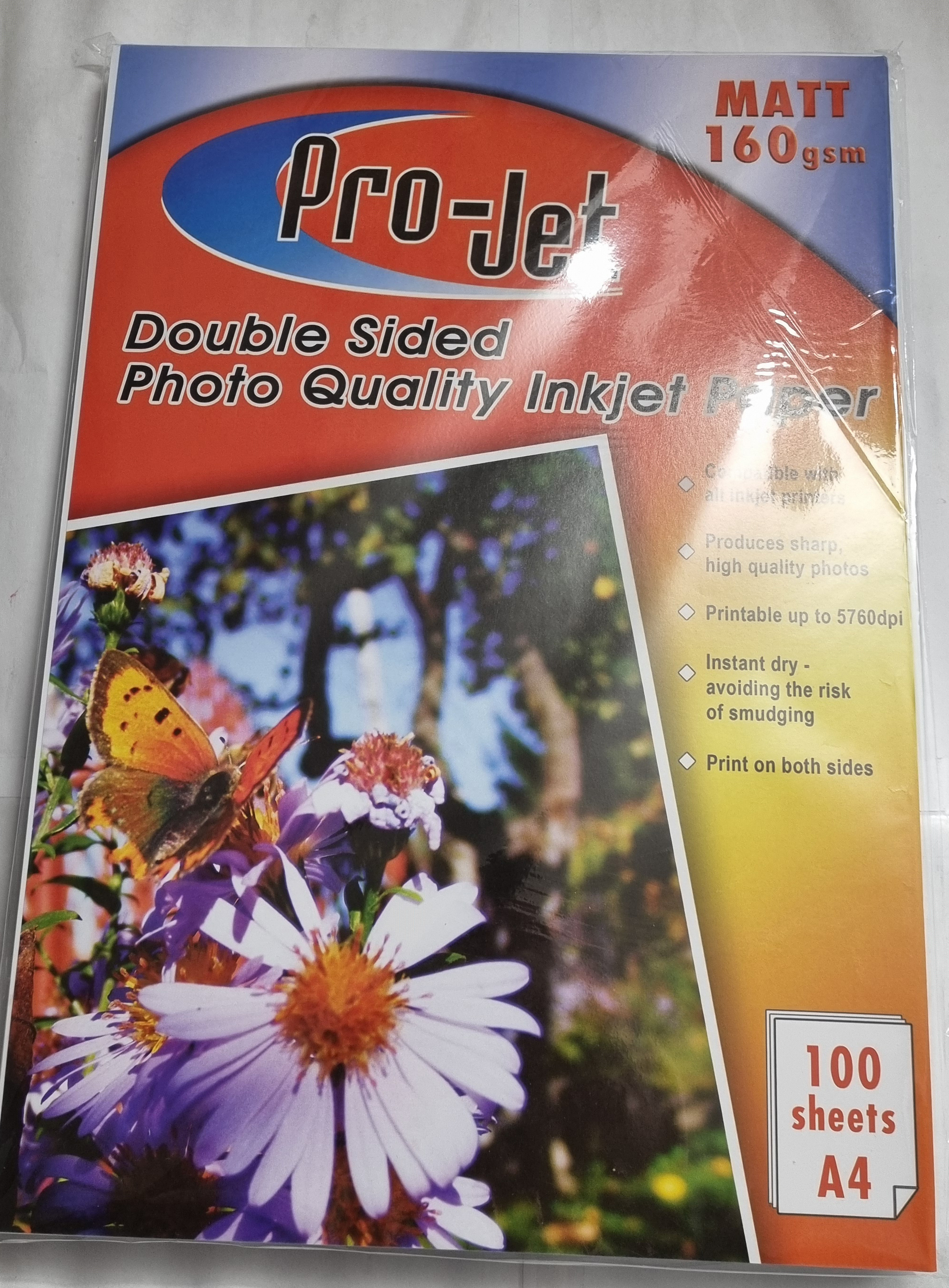 A premium quality A4 paper from Projet that allows you to print on both sides. 160gsm matt finish that can be printed on up to 5760dpi to product sharp, high quality photos. Compatible with all inkjet printer and utilising instant dry technology to avoid smudging.