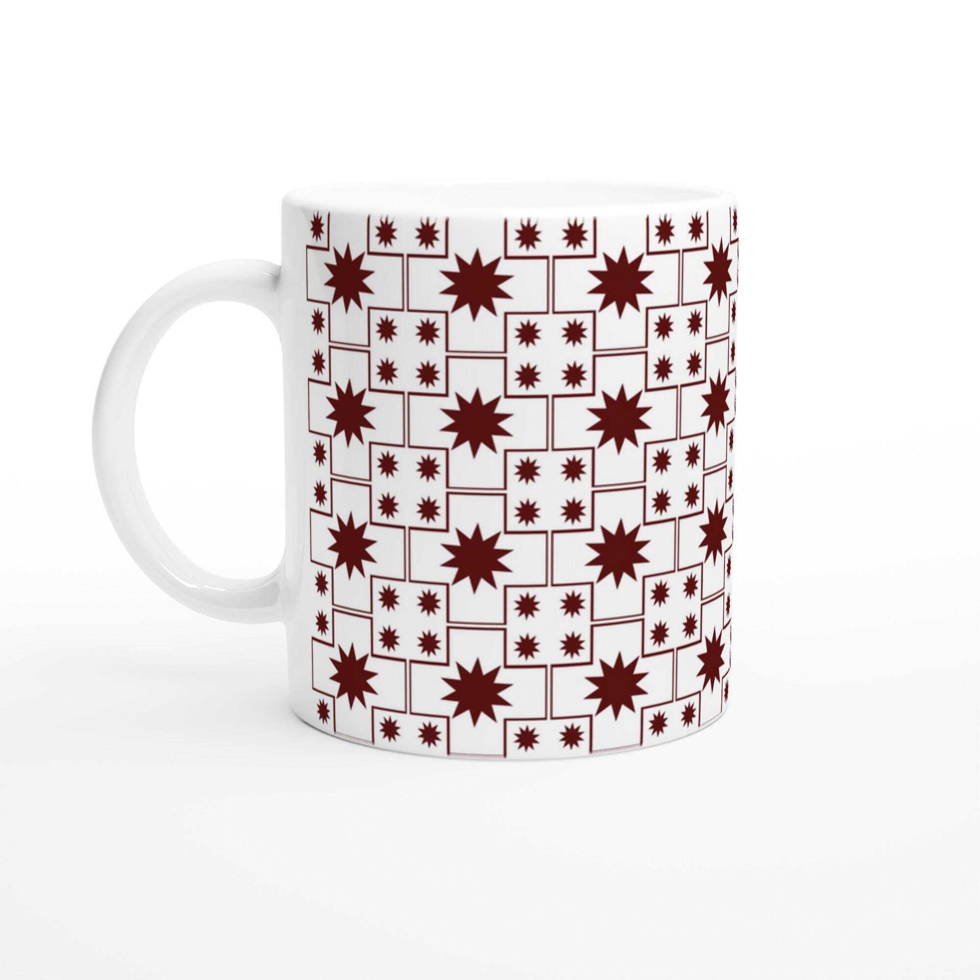 This beautiful ceramic Star Tile Pattern Mug is perfect for any event of the day. Your morning coffee, a hot chocolate, or any other hot beverage you enjoy. The mug is glossy white or pink with a coloured rim, inside, and handle. The prints come out beautifully and vividly on it. The print retains its quality and lustre when used in both microwaves and the dishwasher.
