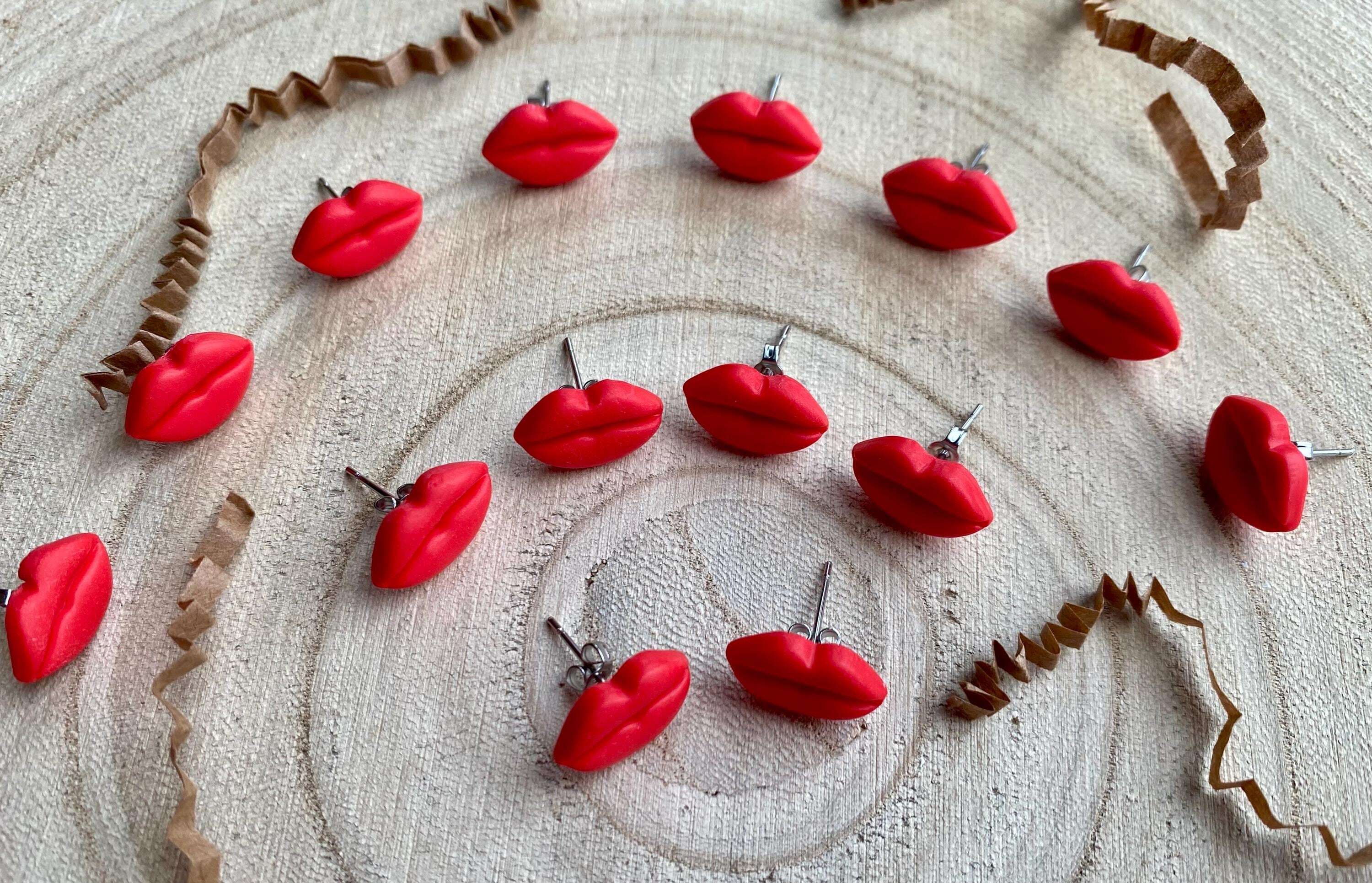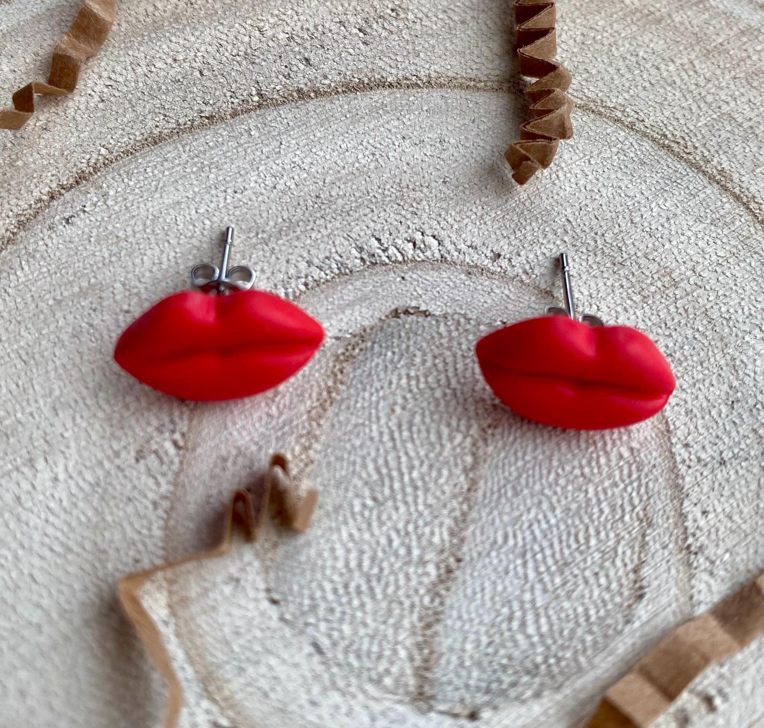 Handmade Red Lip Stud Earrings: Valentines earrings, Valentines gifts, Bisou, hot red lips, Hen party gifts, bold red lips, polymer clay