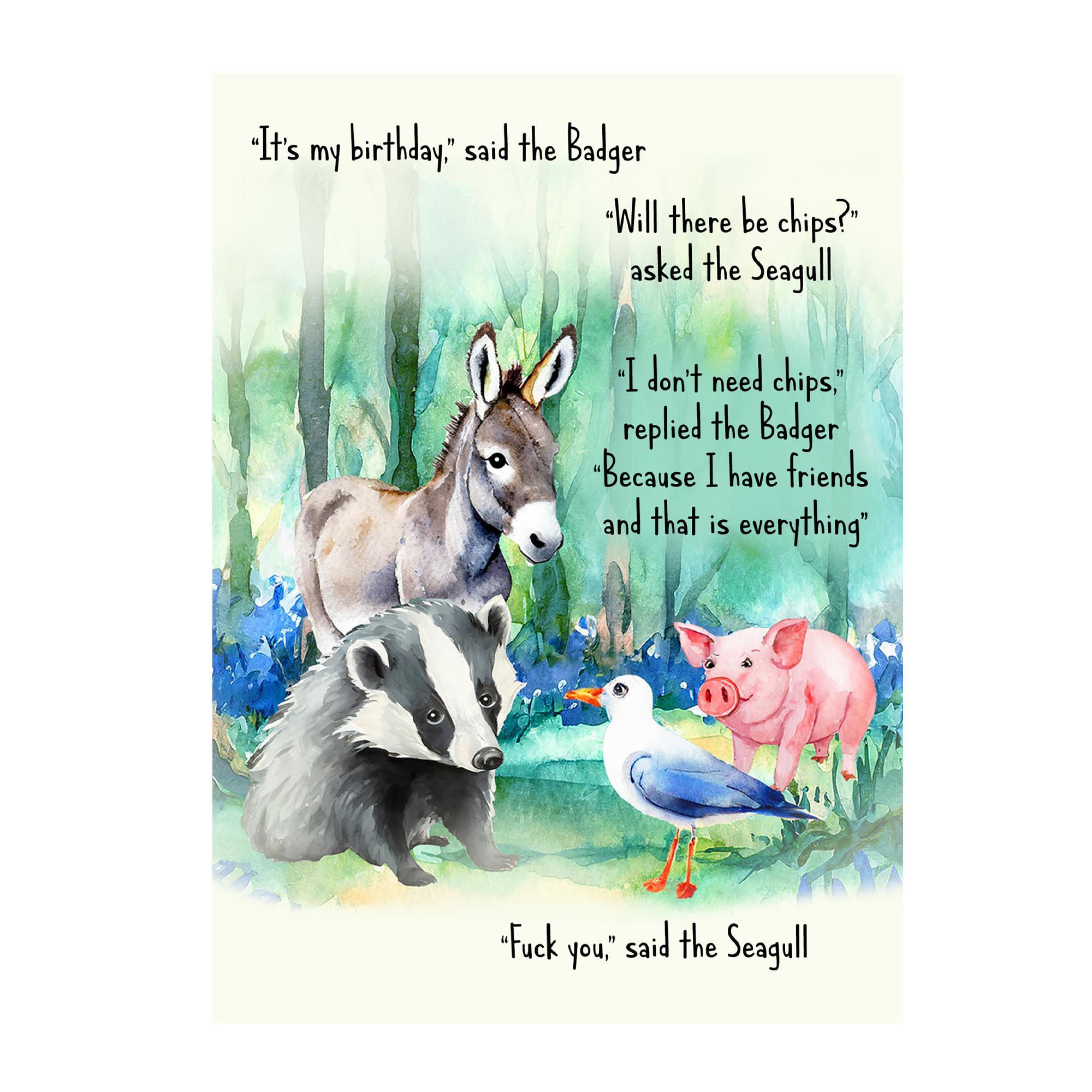 Funny Birthday Card pig donkey seagull badger A5 uncoated textured