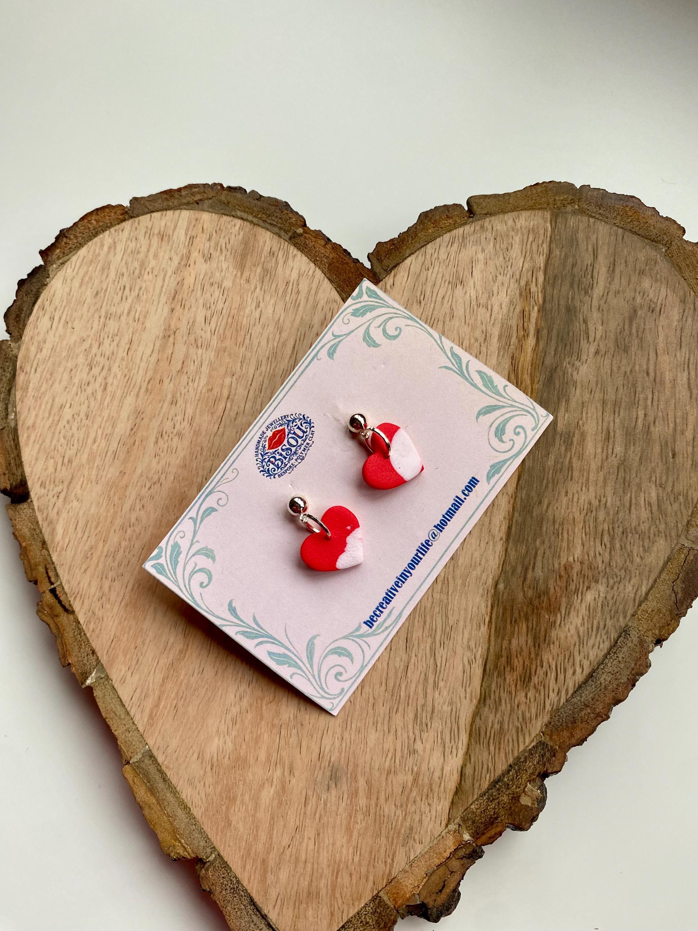Handmade Red Heart Stud Earrings – Polymer Clay, Silver-Tone
