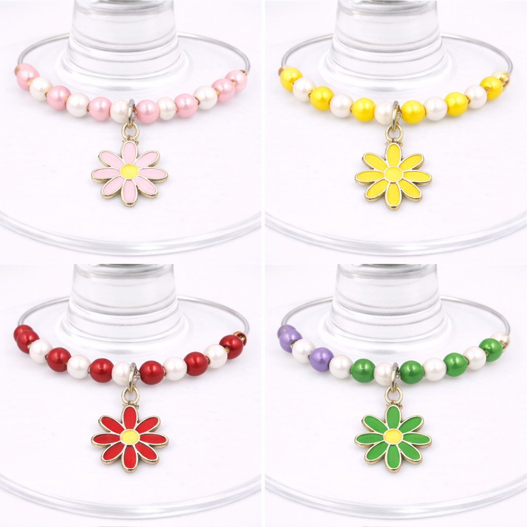 Handmade Wine Glass Charm - Coloured Daisy