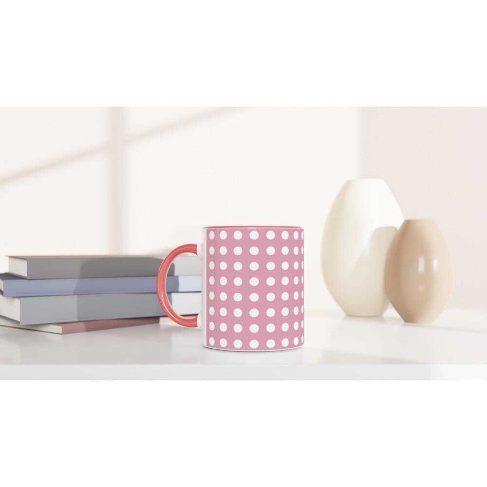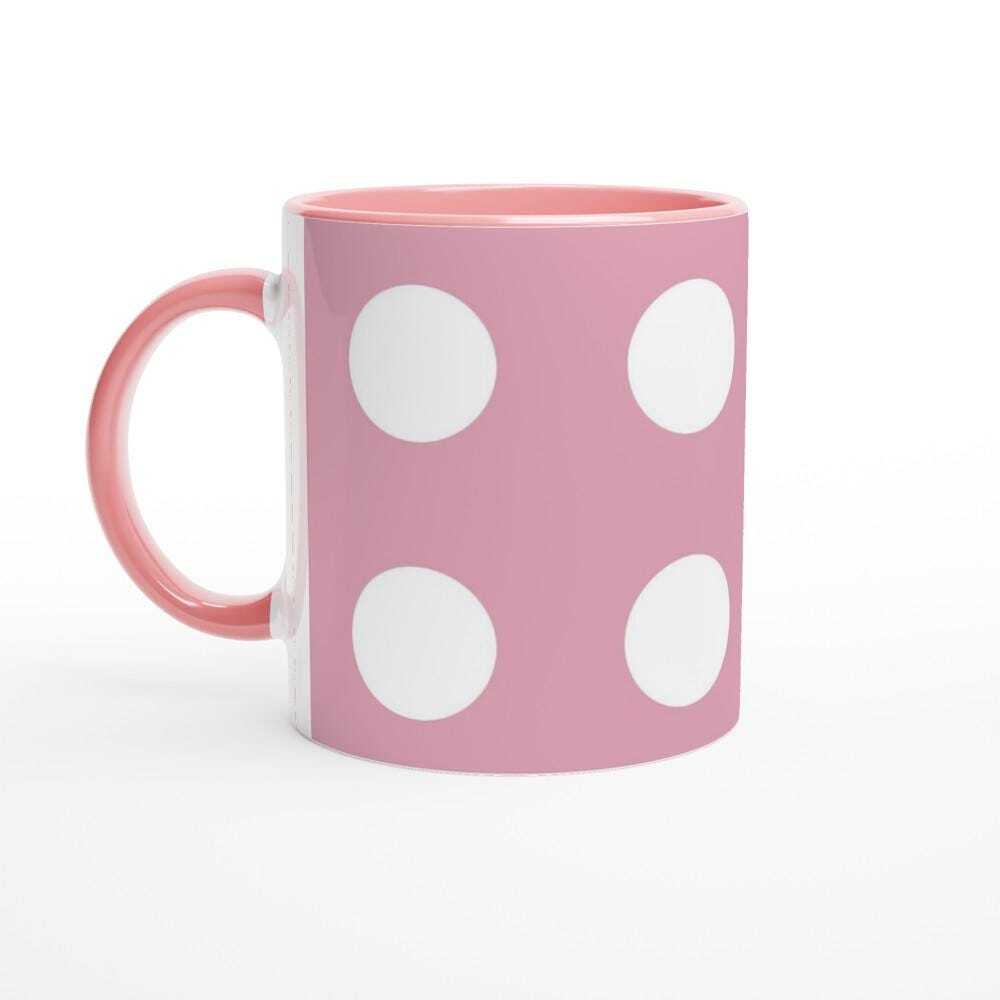 This beautiful ceramic mug is perfect for any event of the day. Your morning coffee, a hot chocolate, or any other hot beverage you enjoy. The mug is glossy white with a colored rim, inside, and handle. The prints come out beautifully and vividly on it. The print retains its quality and luster when used in both microwaves and the dishwasher.