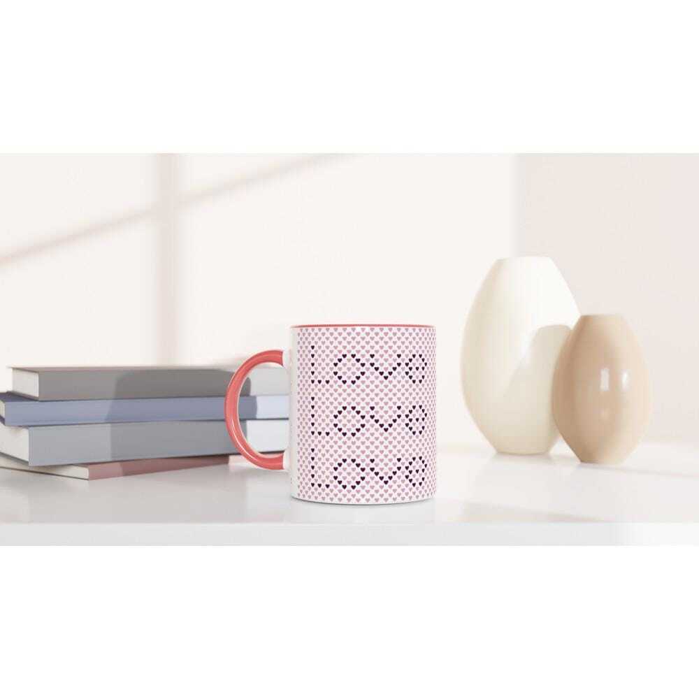 This beautiful ceramic pink love heart mug is a perfect Valentine's Mug for someone you love. Their morning coffee, hot chocolate, or tea will taste so much better. The mug is glossy white with a pink coloured rim, inside, and handle. The prints come out beautifully and vividly on it. The print retains its quality and lustre when used in microwaves and dishwashers.