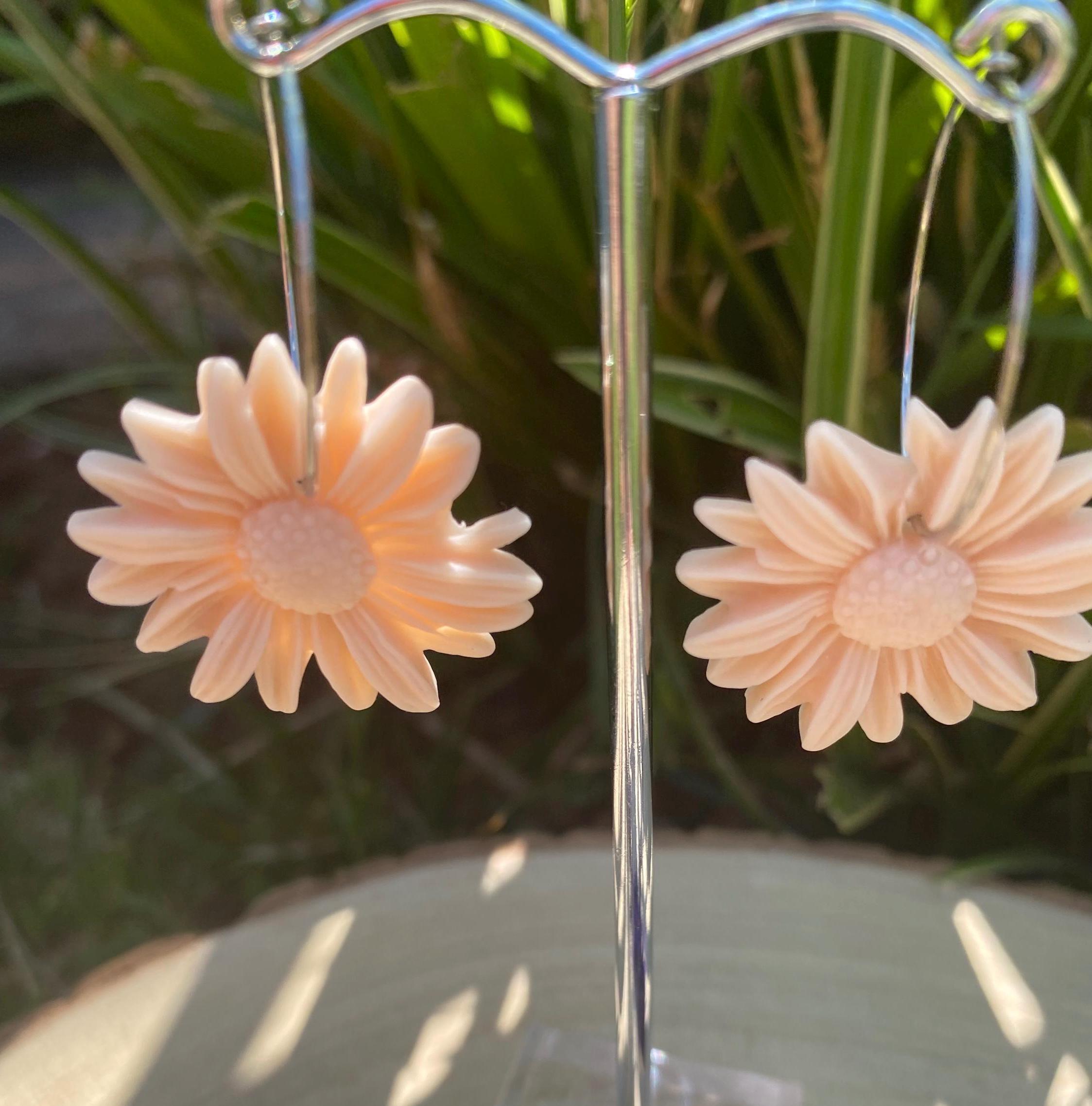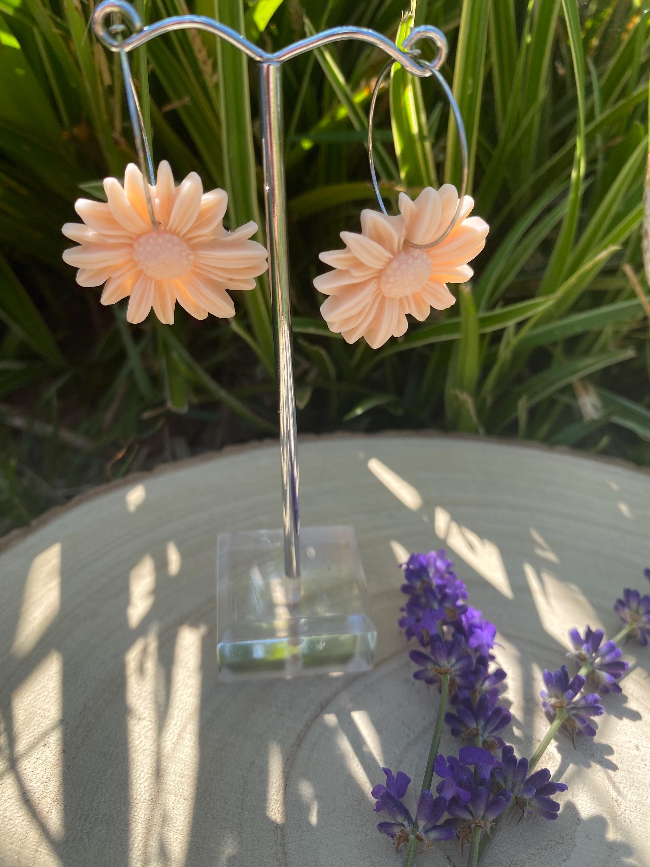 Pink Clay Flower Dangle Earrings: Boho Nature-Inspired Jewelry