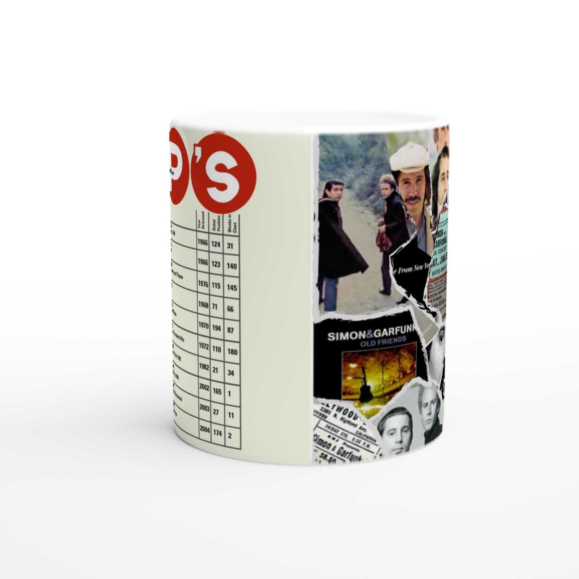 This Simon and Garfunkel Mug features the first 10 albums shown in a Beatles Anthology style design. The reverse shows the Billboard Chart information about their first 10 albums, as shown on the front. This beautiful ceramic mug is perfect for anyone who enjoys a coffee while listening to their albums. The mug is glossy white and the prints come out beautifully and vividly on it. The print retains its quality and lustre when used in both microwaves and the dishwasher.