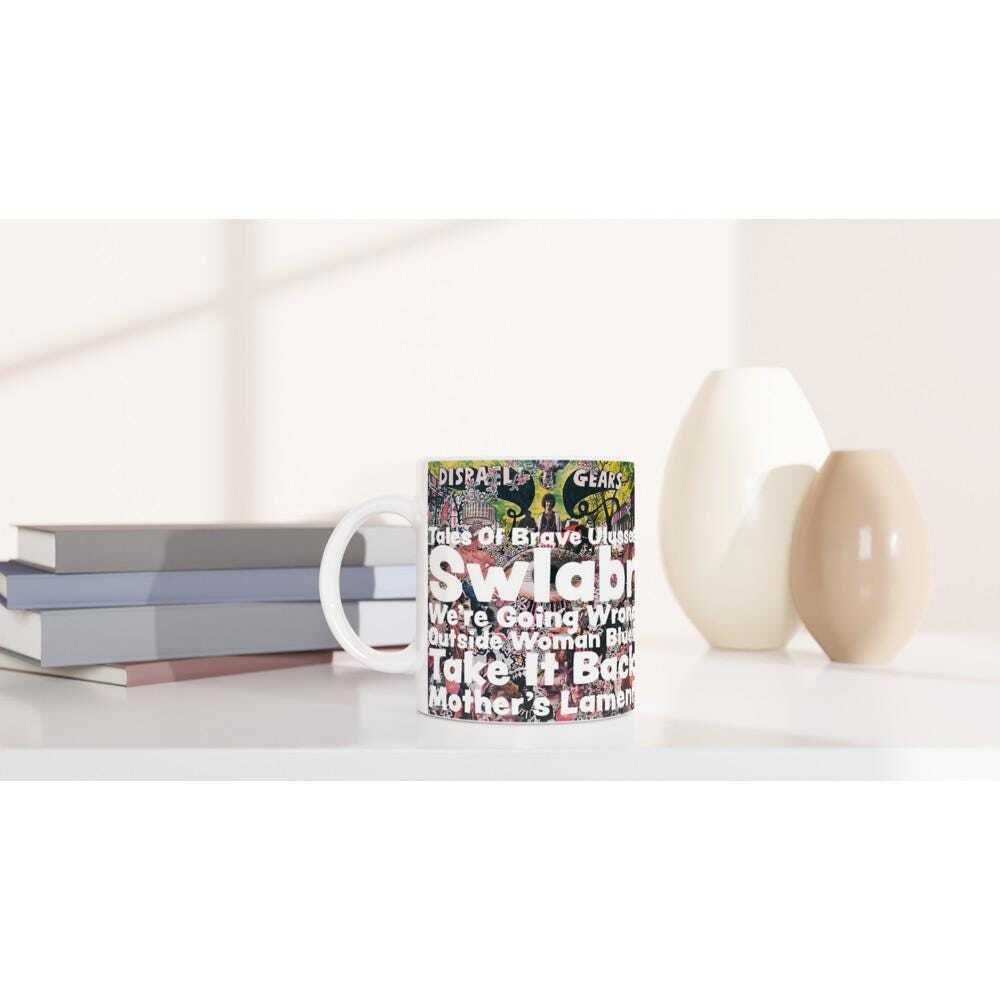 This beautiful ceramic mug is perfect for any occasion, especially while listening to this album, having your morning coffee, hot chocolate, or any other hot beverage you enjoy. The mug is glossy white, or you can choose it with a red rim, inside, and handle. The album track design comes out beautifully and vividly on it. The design retains its quality and lustre when used in both microwaves and dishwashers.