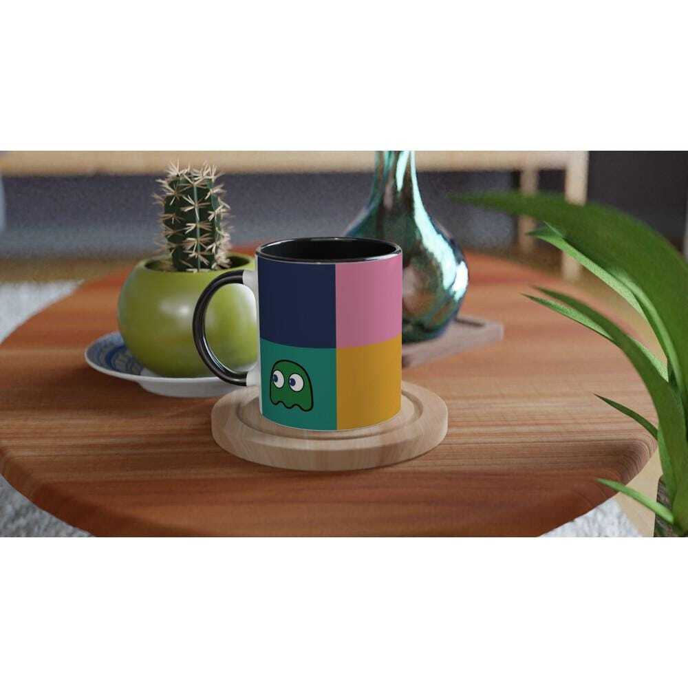 This beautiful ceramic mug is perfect for any event of the day. Your morning coffee, a hot chocolate, or any other hot beverage you enjoy. The mug is glossy white with a colored rim, inside, and handle. The prints come out beautifully and vividly on it. The print retains its quality and luster when used in both microwaves and the dishwasher.