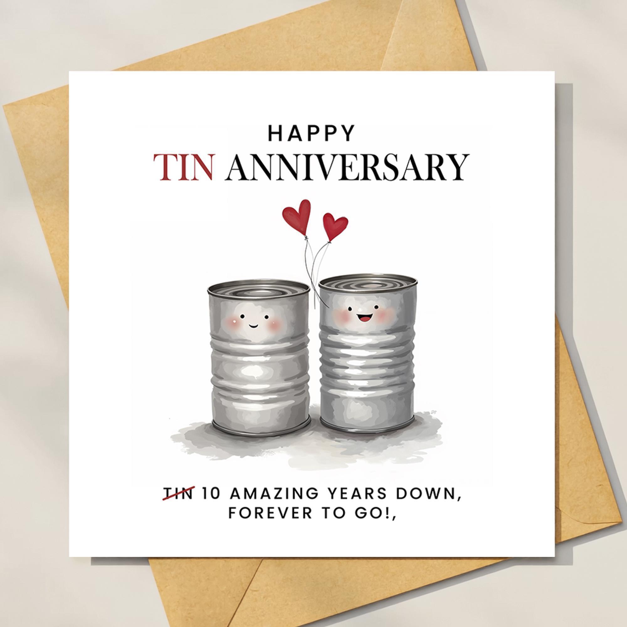 10 Year Anniversary Card For Husband, Wife 10th Anniversary Card, Happy Tin anniversary 10 year Card Funny Greeting Card wife husband