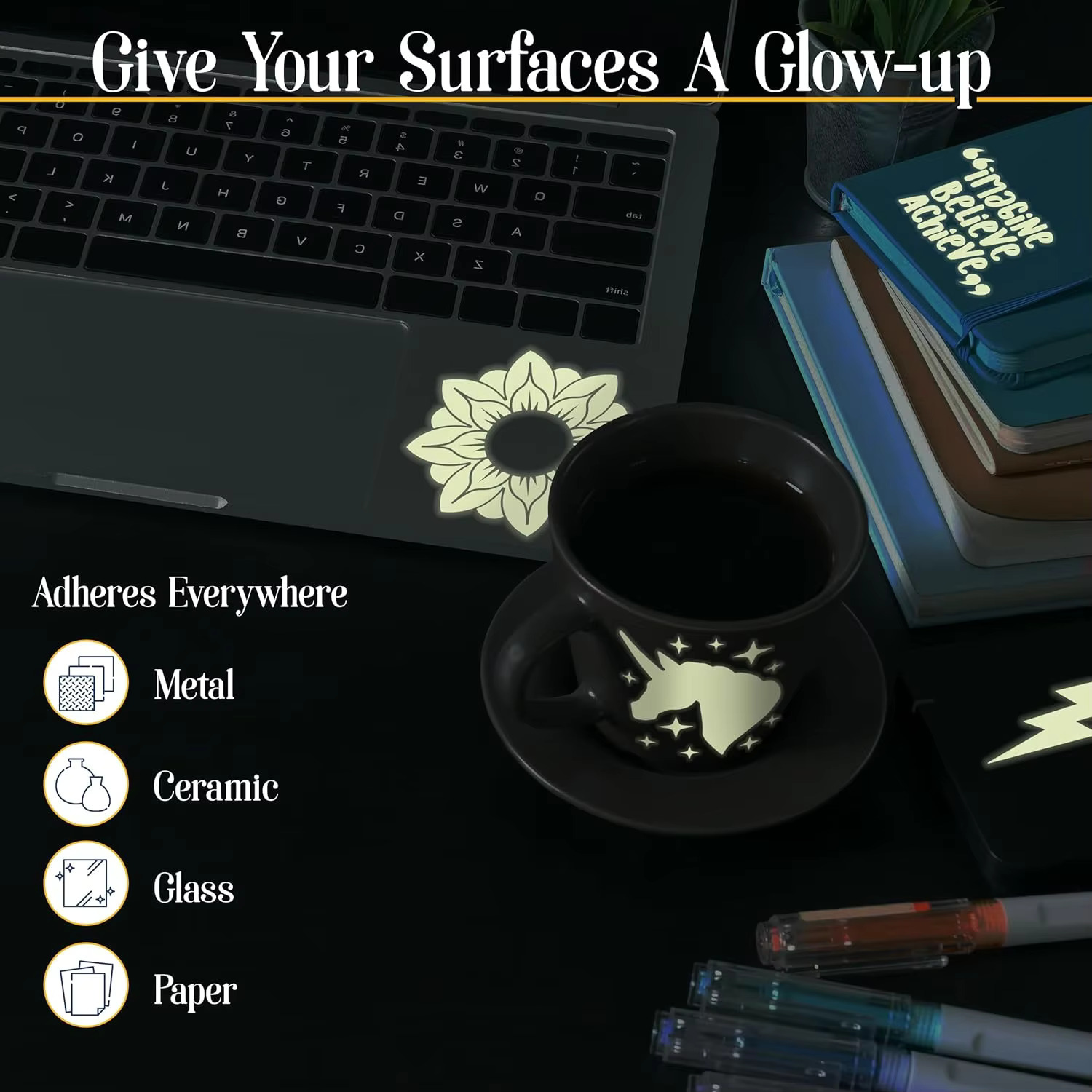 Illuminate your space with our glow-in-the-dark sticker paper, perfect for creating a starry night effect at home.