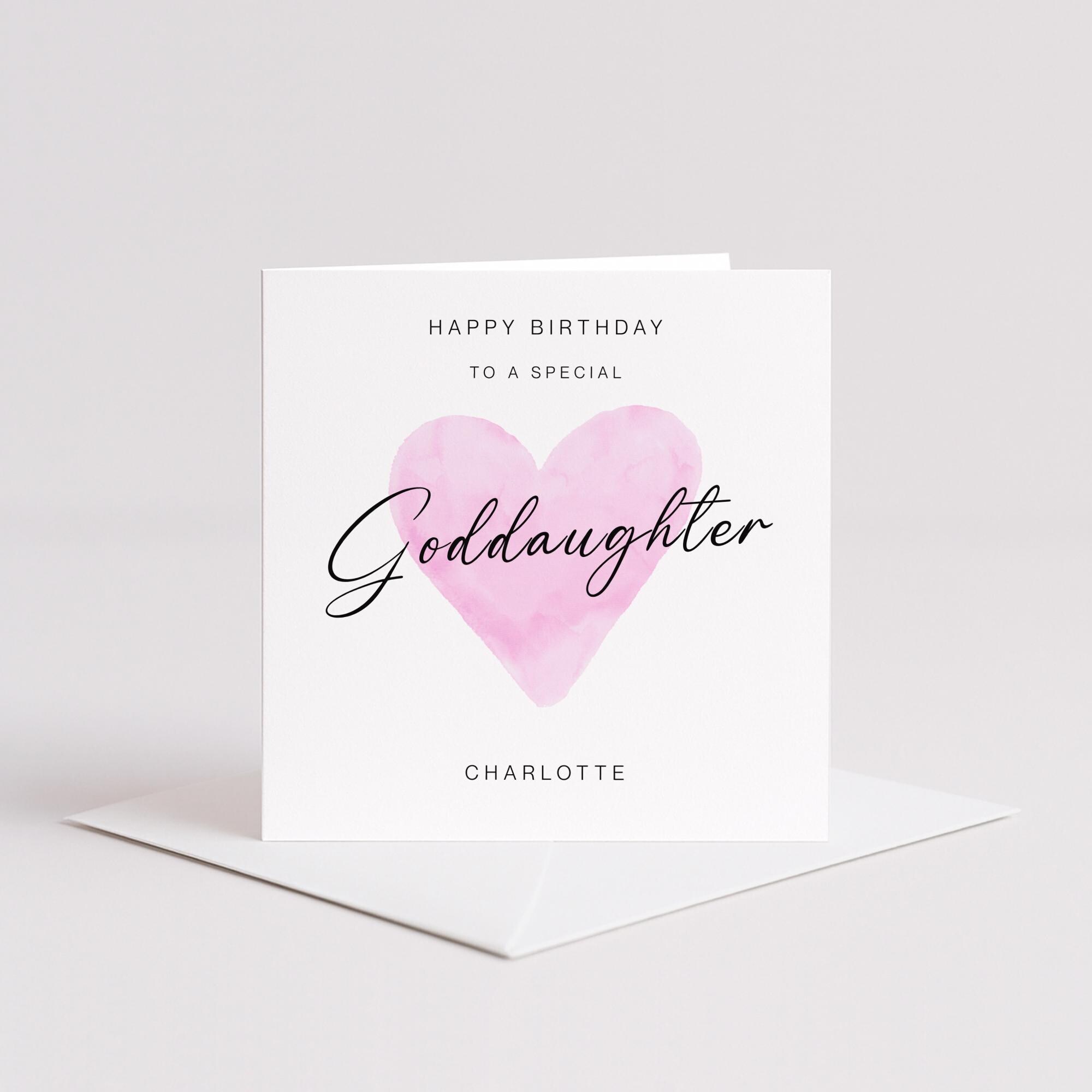 Goddaughter birthday card personalised pink heart design custom name handmade minimalist greeting