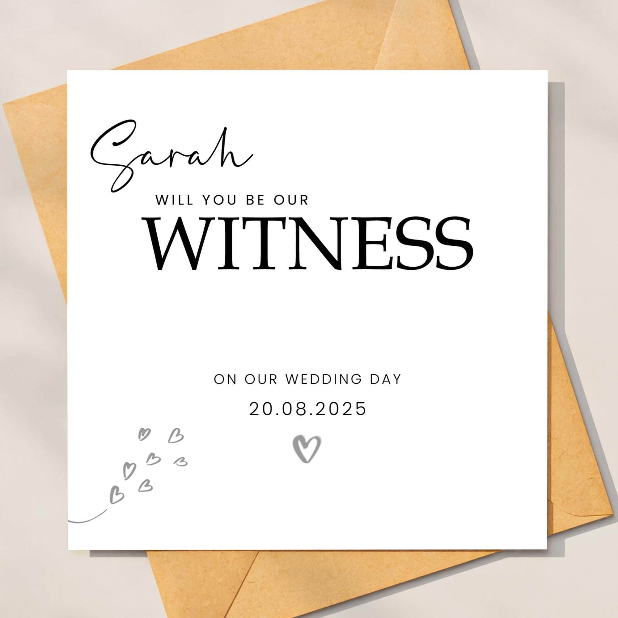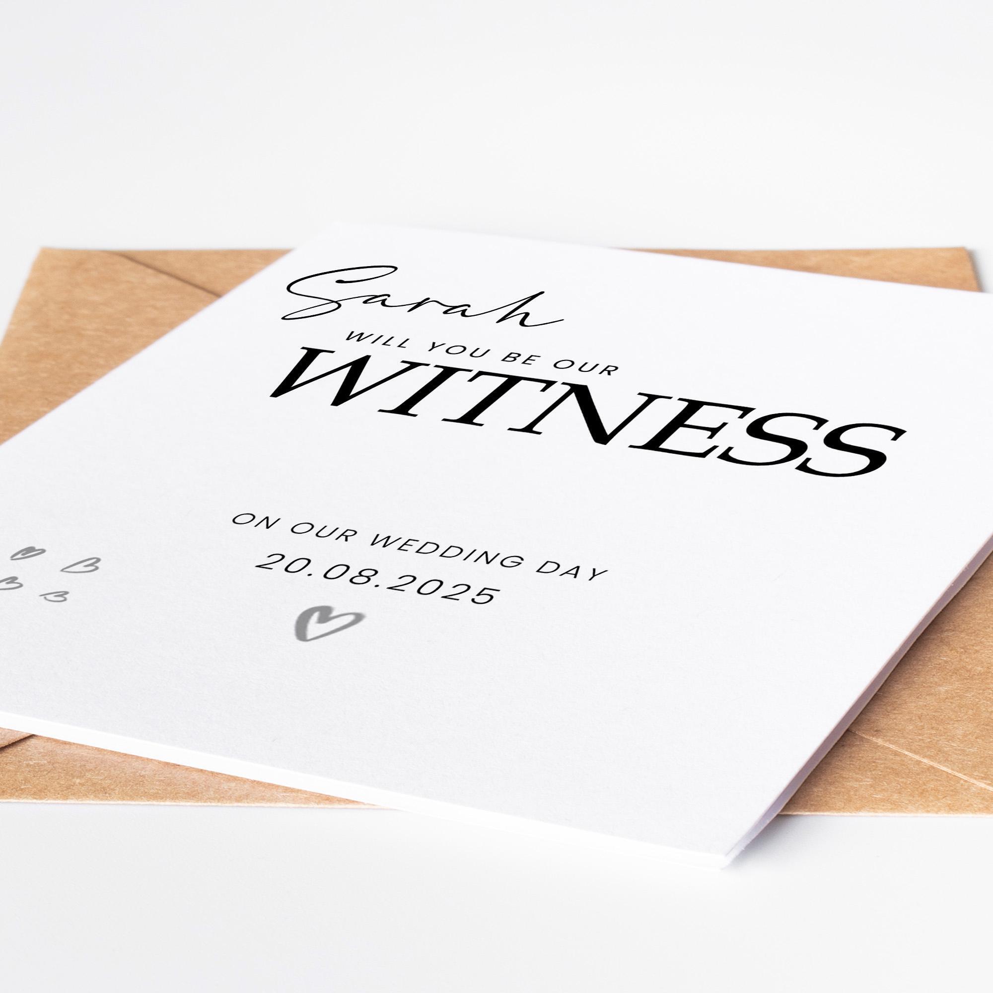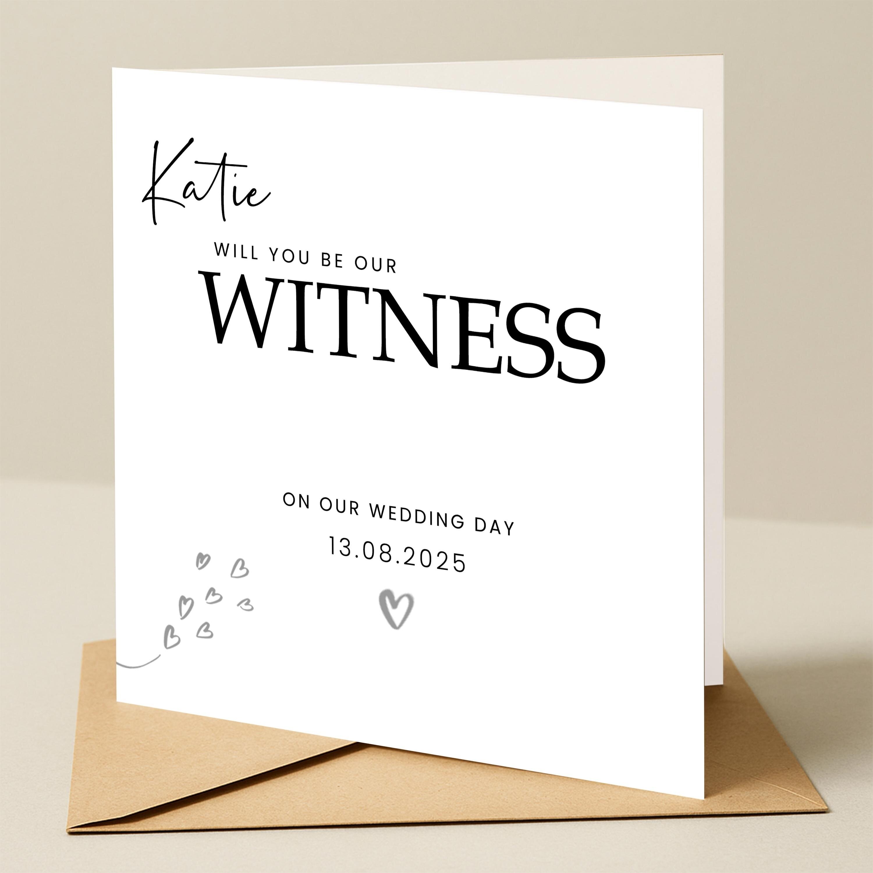 Will you be our witness Personalised Wedding Day Card be our witness, personalised card for wedding, personalised will you be our witness